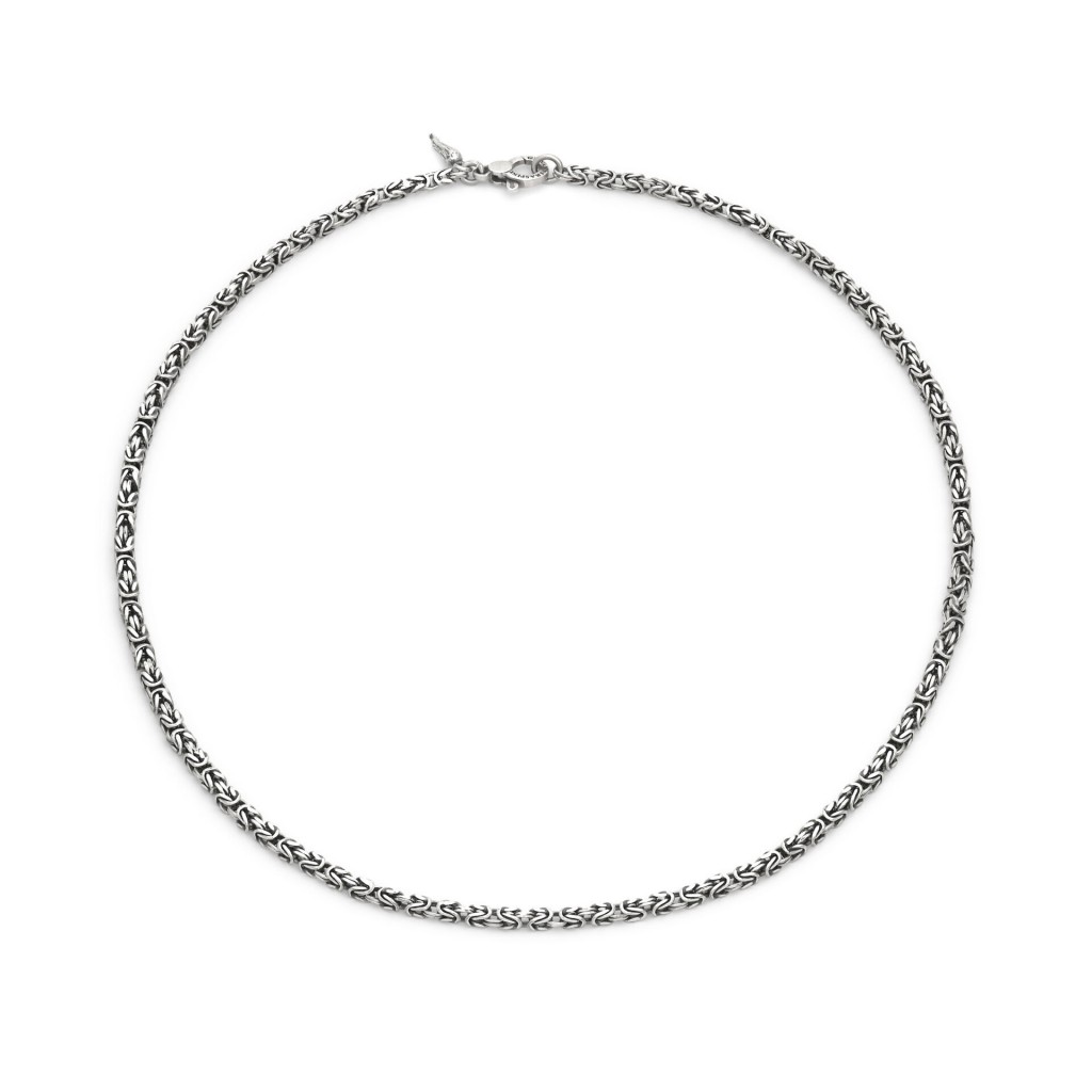 Raffinata e versatile, la collana Maglia Bizantina Quadra Mini in argento completa ogni look.