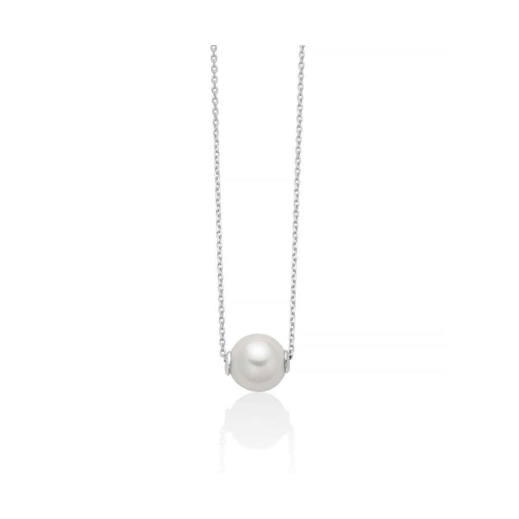 Raffinata collana realizzata in oro bianco 9KT, impreziosita da perle bianche dal diametro di 6,5–7 mm. Un gioiello elegante e senza tempo, perfetto per aggiungere un tocco di classe a qualsiasi look.