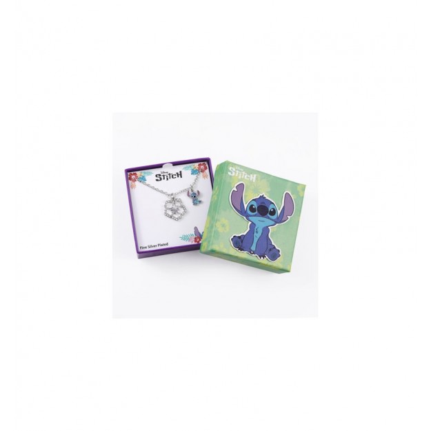 Collana ciondolo fiore realizzata in ottone con cristalli,il ciondolo Stitch è smaltato nelle tonalità del personaggio.