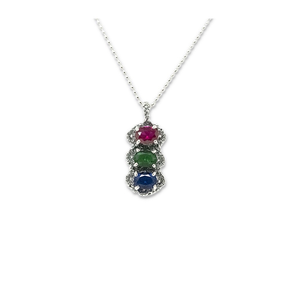 Collana Primule D’Argento Edizione Limitata tre pietre multicolor
