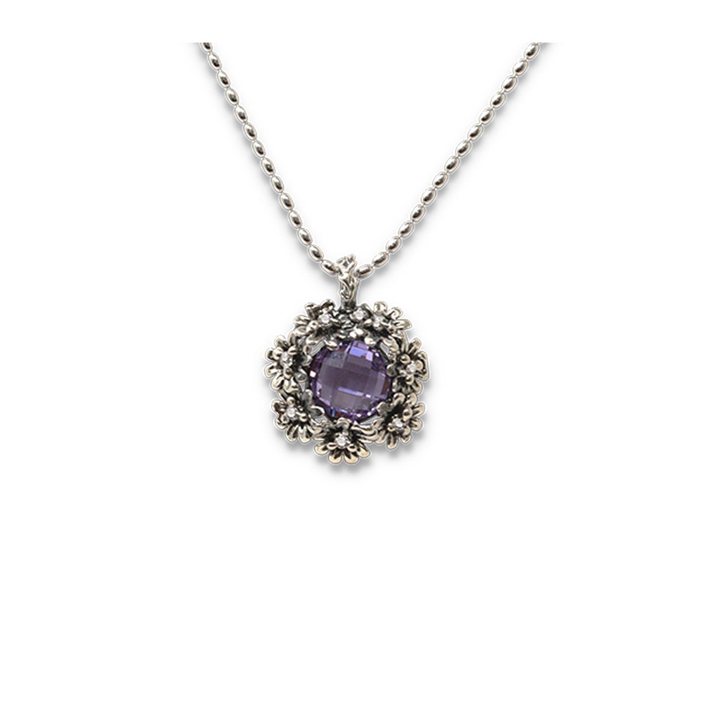 Collana Primule D’Argento pendente rotondo con pietra color lavanda