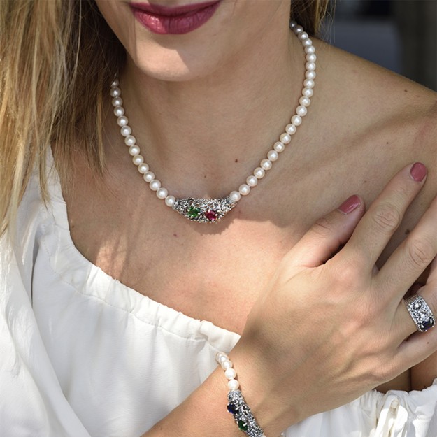 Collana Perle Primule Edizione Limitata piastra centrale con pietre