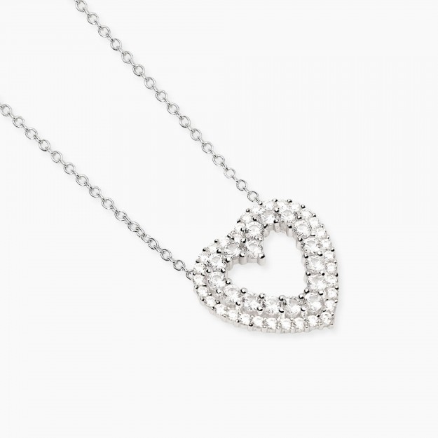 Girocollo in argento 925 rodiato con elegante catena rolò da 1,3 mm e pendente a cuore impreziosito da zirconi bianchi.