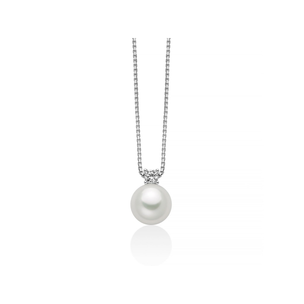 Collana in argento con perla Oriente 8,5-9 mm illuminata da un topazio bianco