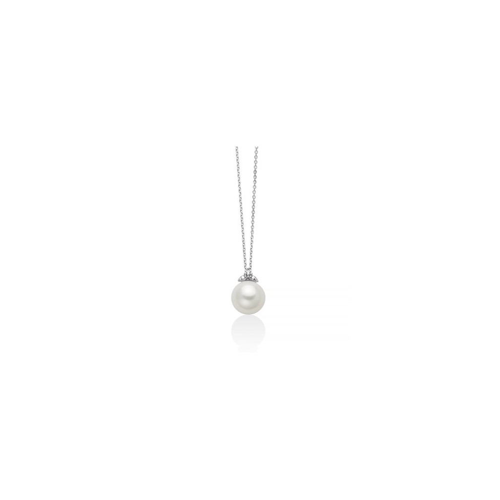 Collana in oro bianco 750 con perla e diamante naturale. Elegante e raffinata.