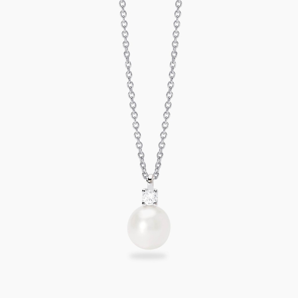 Collana con perla coltivata e diamante lab-grown 0,08 carati