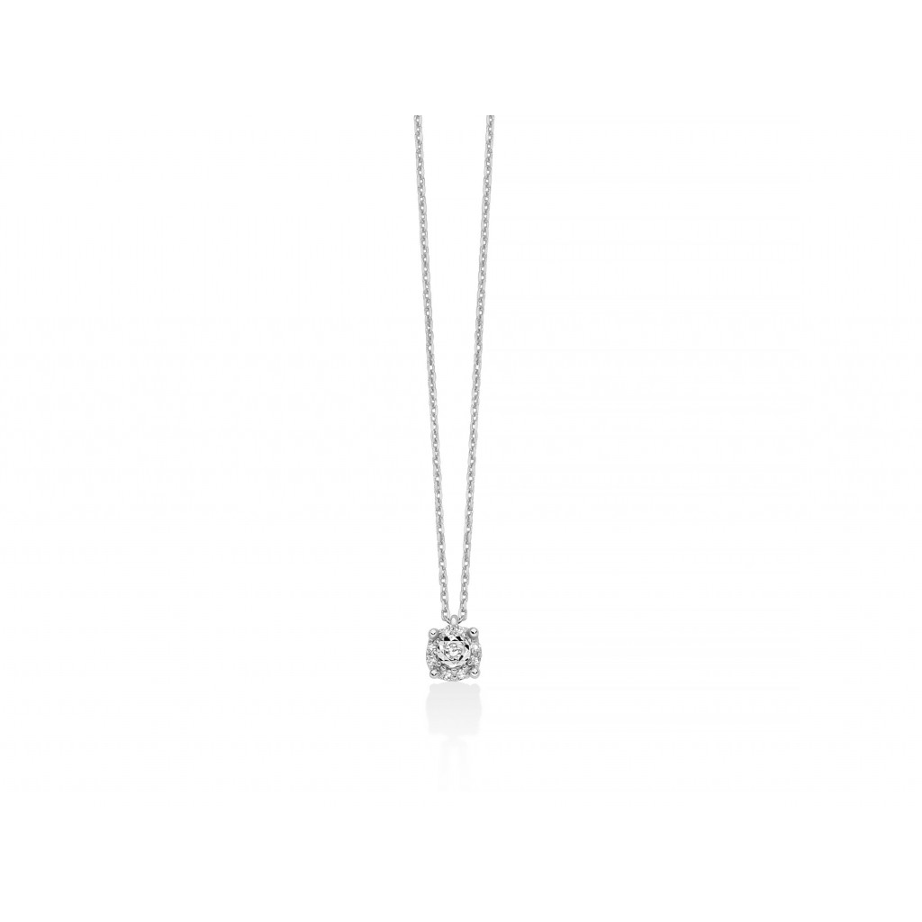 Collana con diamanti naturali incastonati in piastrina di oro bianco 375 sfaccettata, per un effetto che ne amplifica la luce.