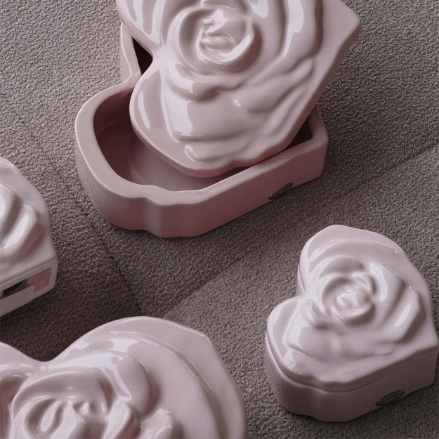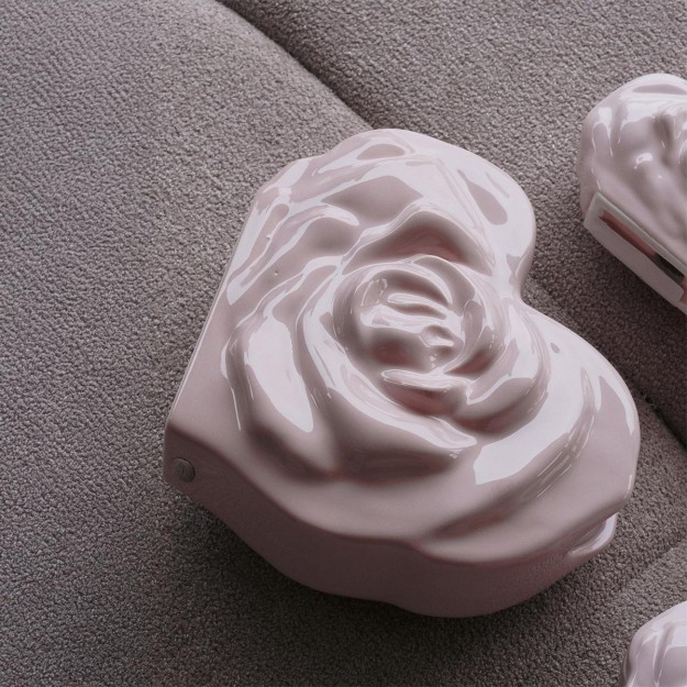 Il rosa della collezione Formia in vetro effetto porcellanato esprime una femminilità delicata e raffinata. La forma ispirata al cuore e alla rosa si unisce a una tonalità morbida e luminosa, creando un equilibrio armonioso tra eleganza e dolcezza, ideale per ambienti accoglienti e ricercati.