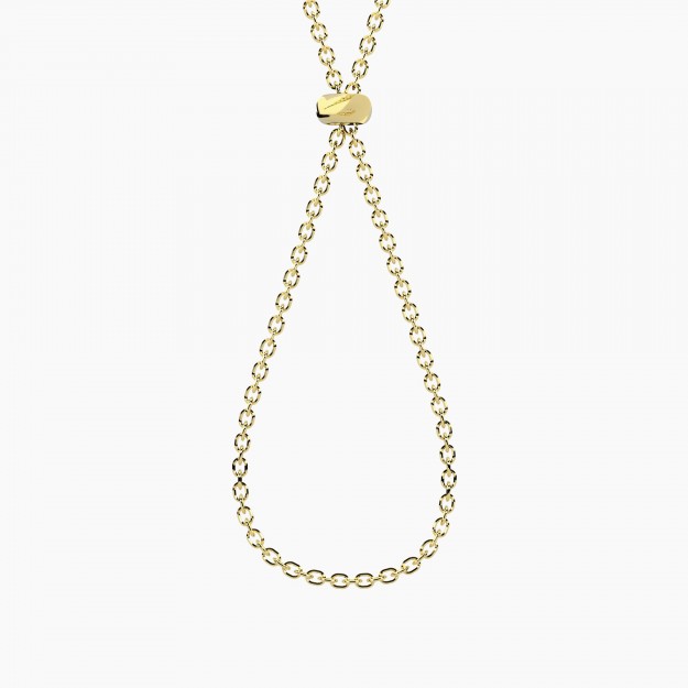 Collana in acciaio 316L dorato con catena forzarina diamantata e stopper regolabile. Inserisci i charm e regola la lunghezza facendo scorrere la catena all’interno dello stopper. Perfetta per creare uno stile personalizzato.