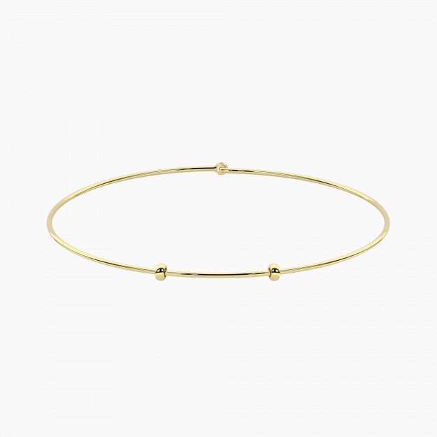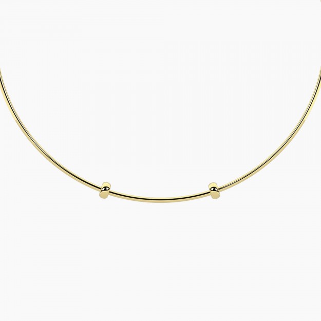 Elegante girocollo rigido in acciaio 316L con finitura dorata PVD. Personalizzabile: sfila lo stopper e inserisci i tuoi charm preferiti per un look unico e versatile.