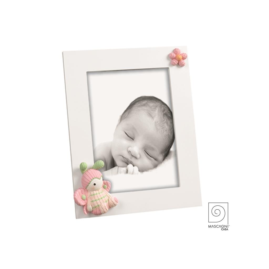 Portafoto Baby in legno bianco con fiore e coccinella 13 x 18