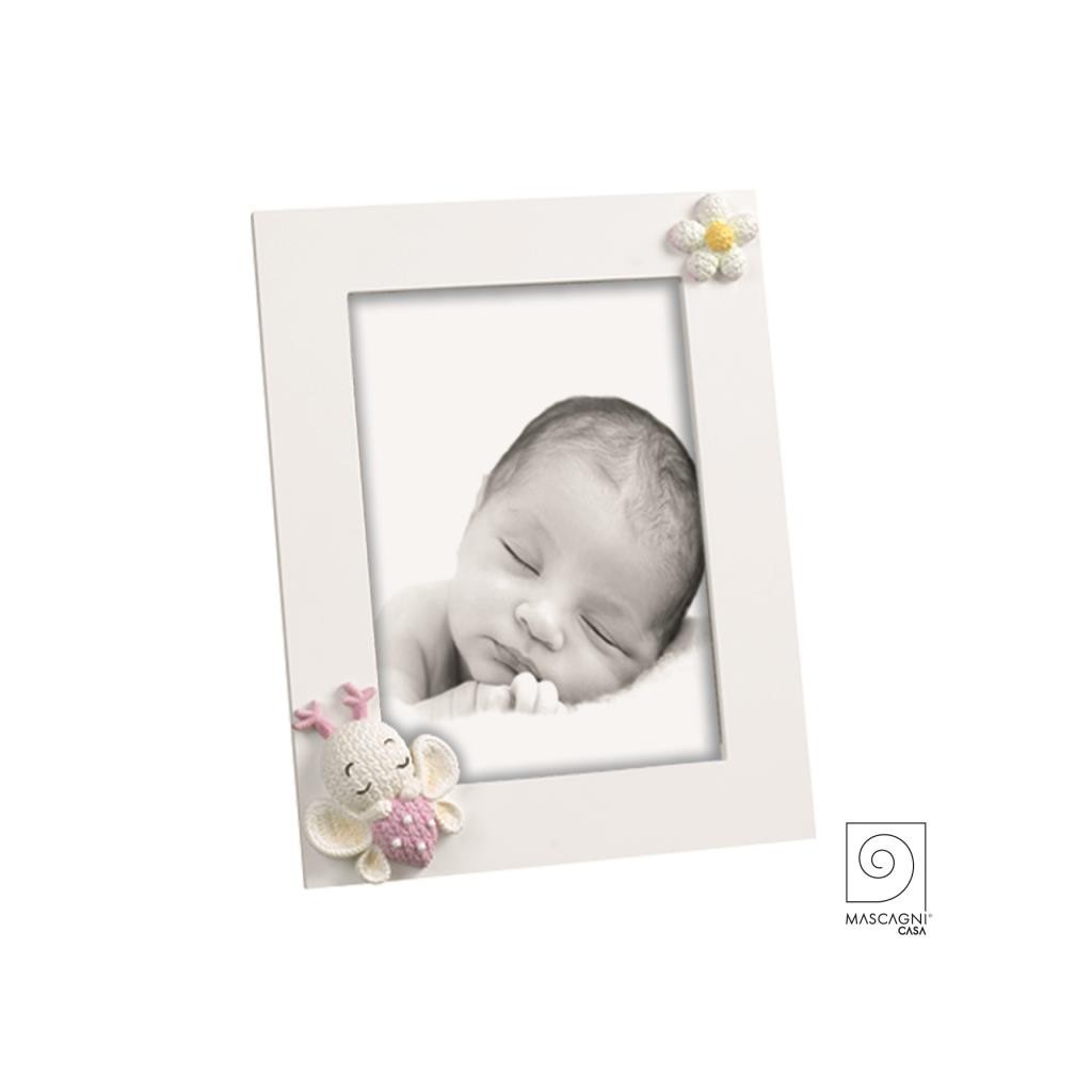 Portafoto Baby in legno bianco con fiore e farfalla 13 x 18