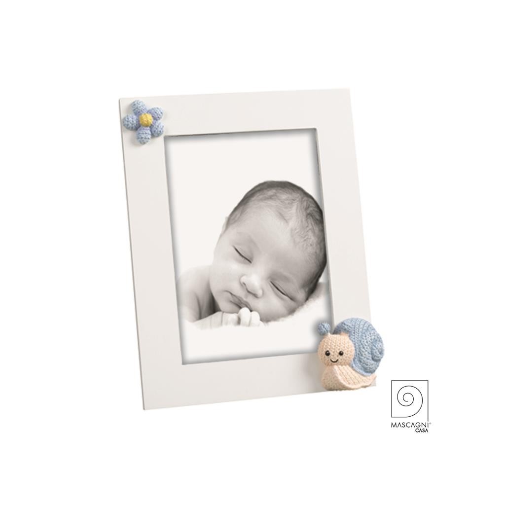 Portafoto Baby in legno bianco con fiore e lumaca 13 x 18