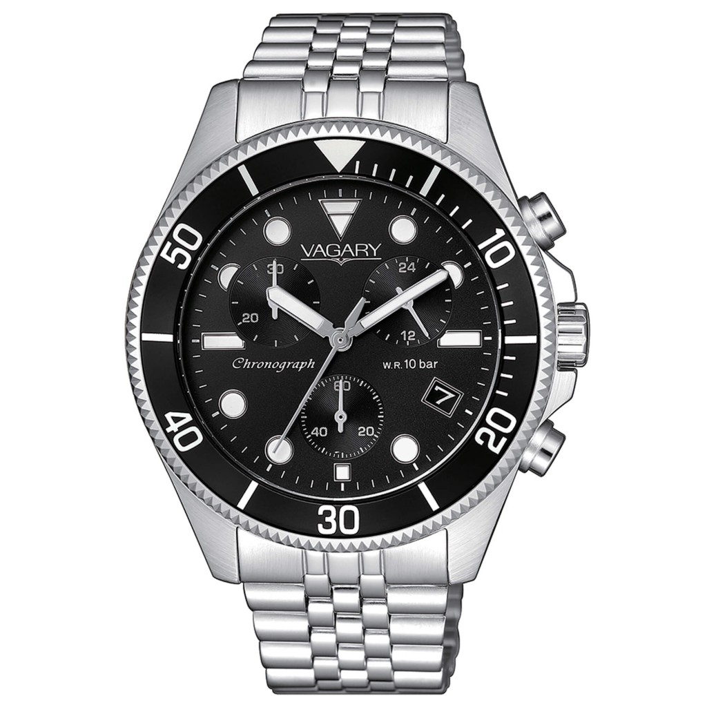 Orologio da uomo con funzione cronografo e movimento al quarzo, realizzato in acciaio con fondello a vite. Quadrante analogico nero con vetro minerale e impermeabilità fino a 10 bar. Cassa da 41 mm e bracciale in acciaio, ideale per uno stile sportivo ed elegante.