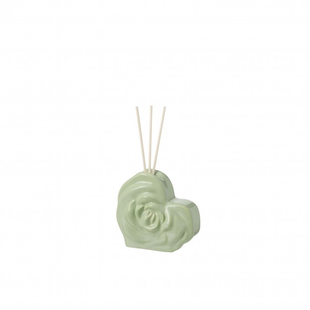 Profumatore in ceramica smaltata della serie " Il Giardino dei Profumi. Dispone di 3 bastoncini diffondi fragranze e comprende una boccetta da 10 ml di profumazione.