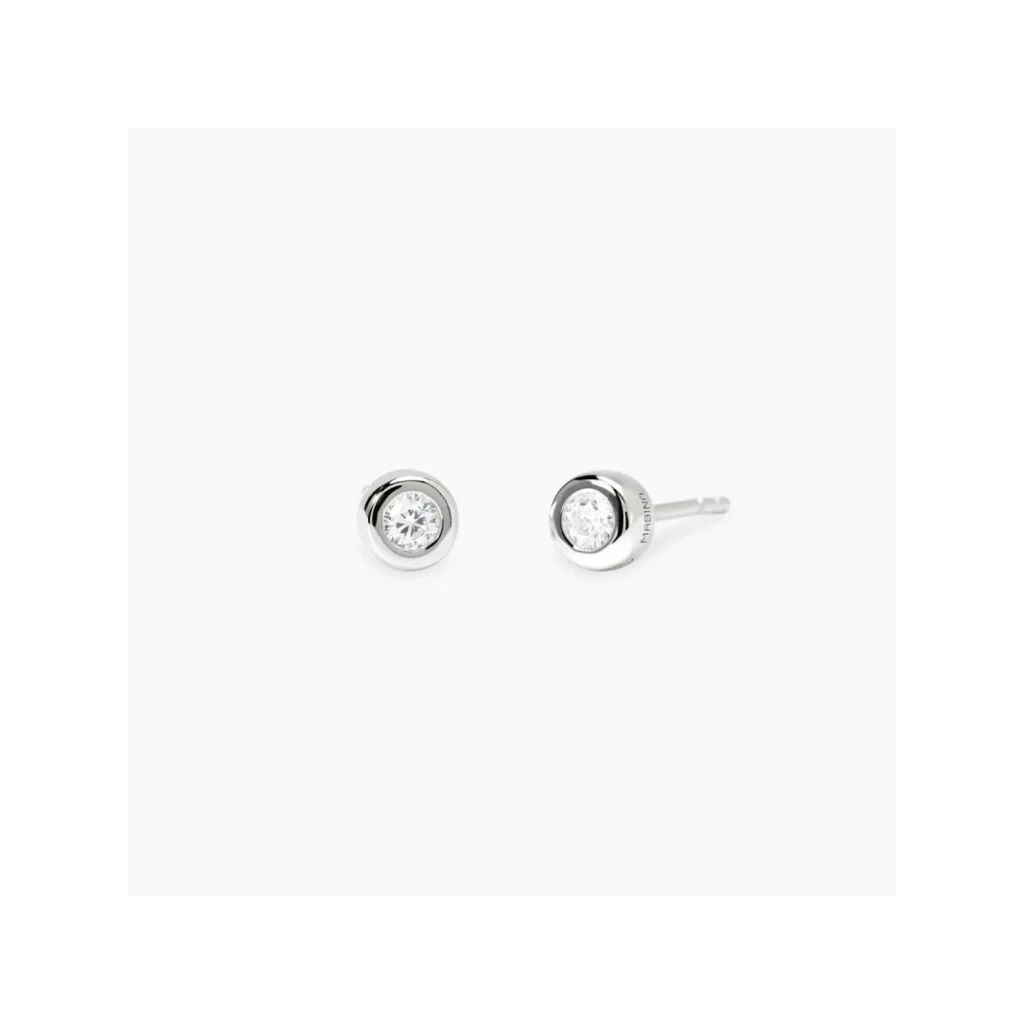 Orecchini Mabina in argento 925 rodiato con diamanti lab-grown da 0,09 ct totali. Dal design raffinato e dal diametro di 4,8 mm, donano una luce discreta e preziosa al look quotidiano. I diamanti lab-grown da 2,8 mm ciascuno offrono una brillantezza eccezionale, unendo eleganza e sostenibilità in un gioiello senza tempo.Chiusura con farfallina
