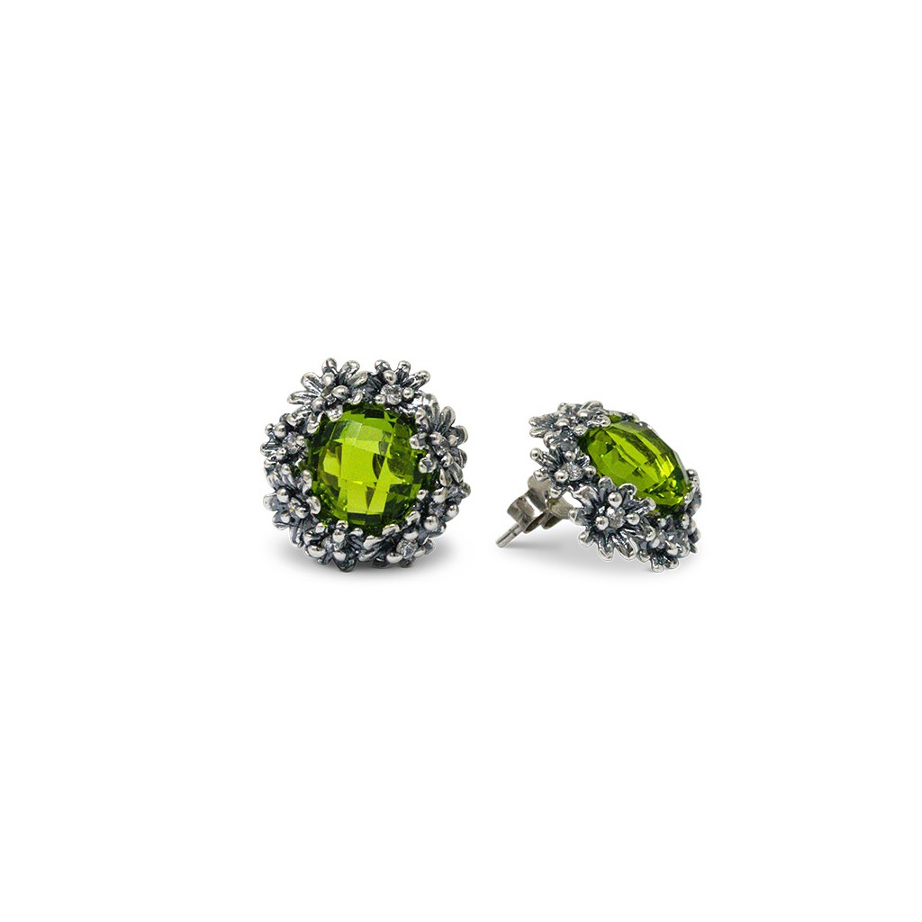 Orecchini Primule D’Argento con peridoto verde