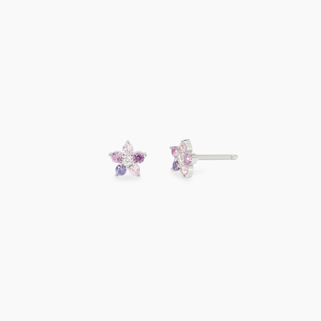 Orecchini da bambina graziosi e colorati, realizzati in argento 925 rodiato con fiori decorati da tormaline rosa sintetiche e zirconi scintillanti. Perfetti per aggiungere un tocco di allegria e brillantezza a ogni piccolo look.