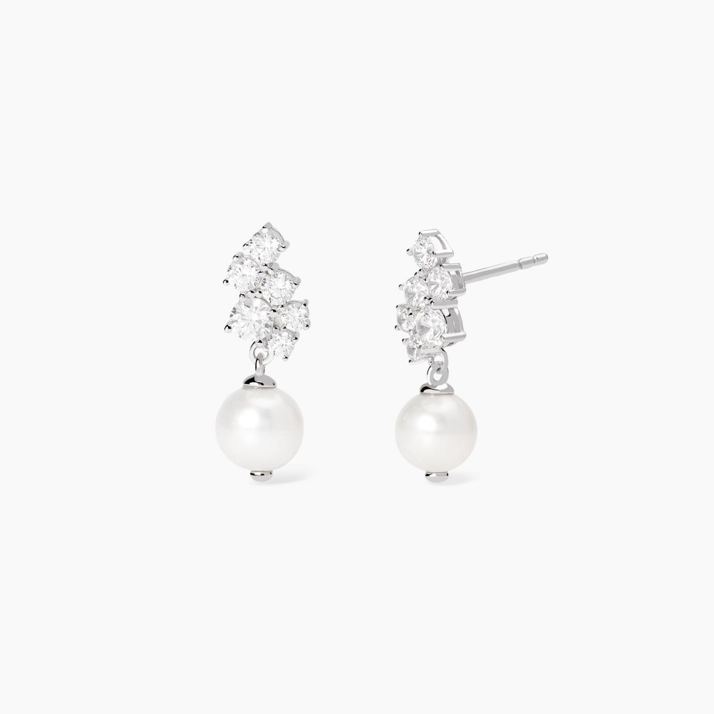 Orecchini eleganti in argento 925 rodiato, arricchiti da perle coltivate e zirconi bianchi di diverse dimensioni. Raffinati e luminosi, aggiungono un tocco di classe e brillantezza discreta a ogni outfit.