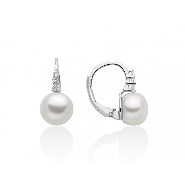 Orecchini a lobo in argento con perla coltivata.• Diametro delle perle: 7,5/8 mm• Materiale: Argento 925, Perle coltivate