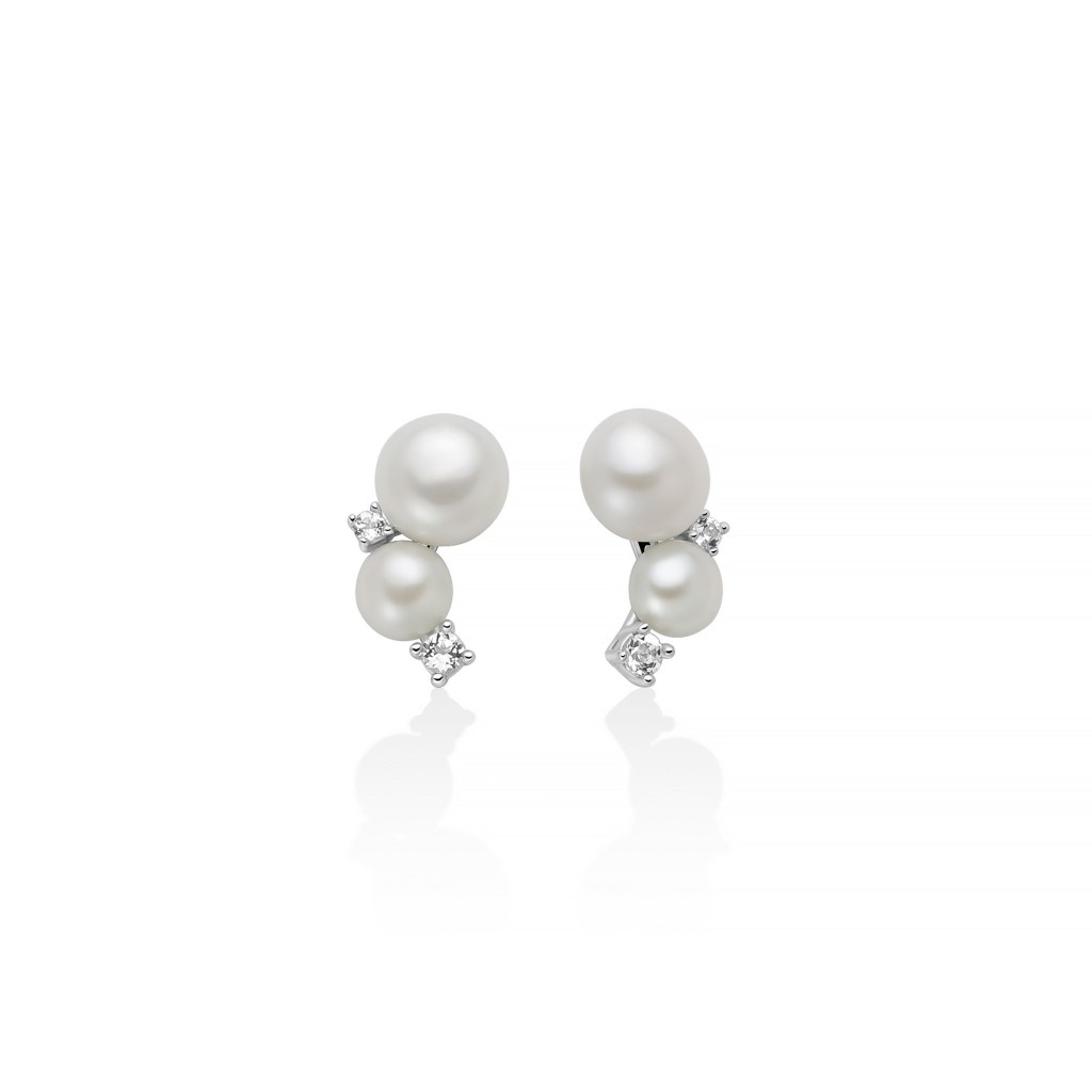 Mono orecchino a lobo in argento rodiato con lettera in pavé di zirconi bianchi.• Diametro zirconi: 1.25 mm• Materiale: Argento 925, Zirconi