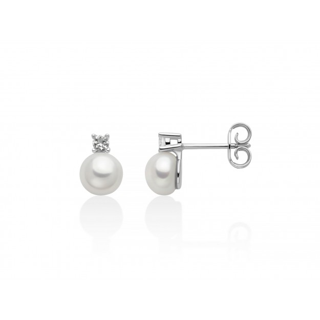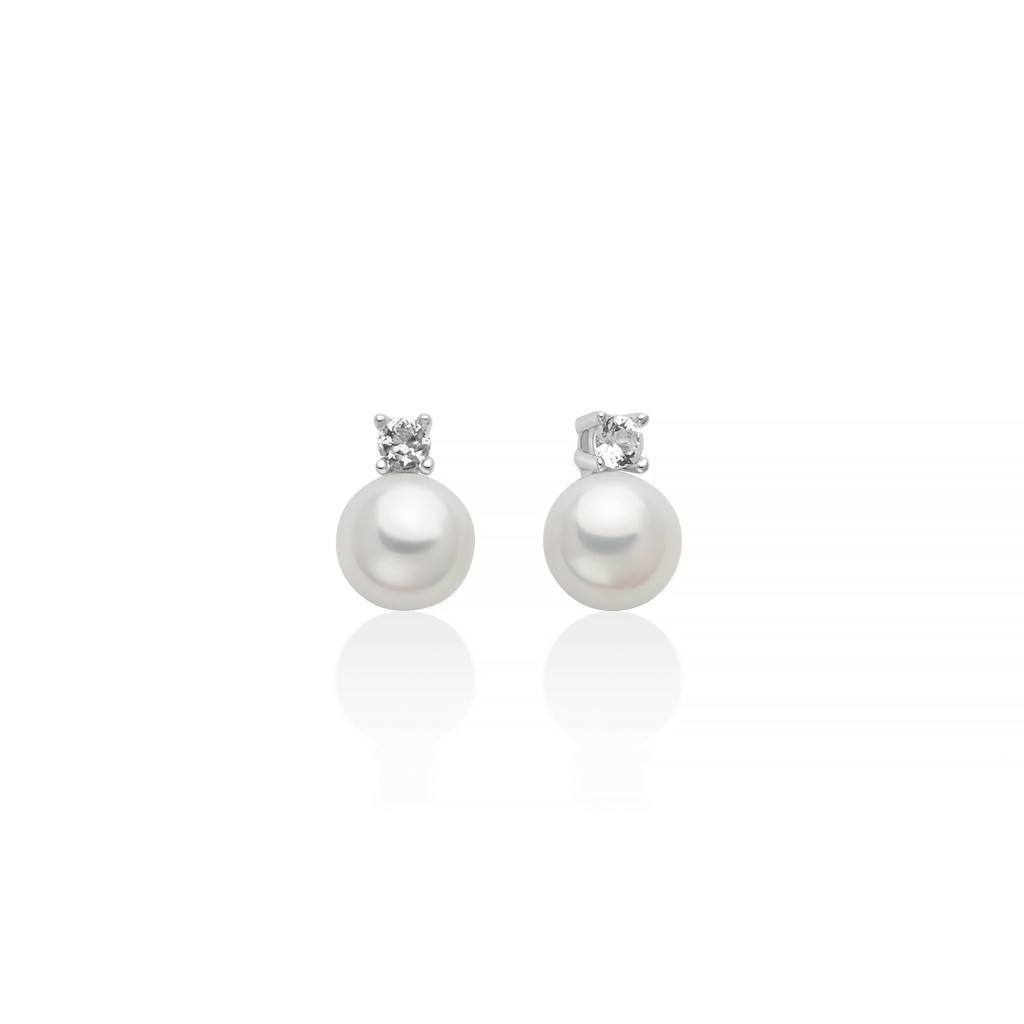 Orecchini in argento con perla Oriente 6,5-7 mm illuminata da un topazio bianco