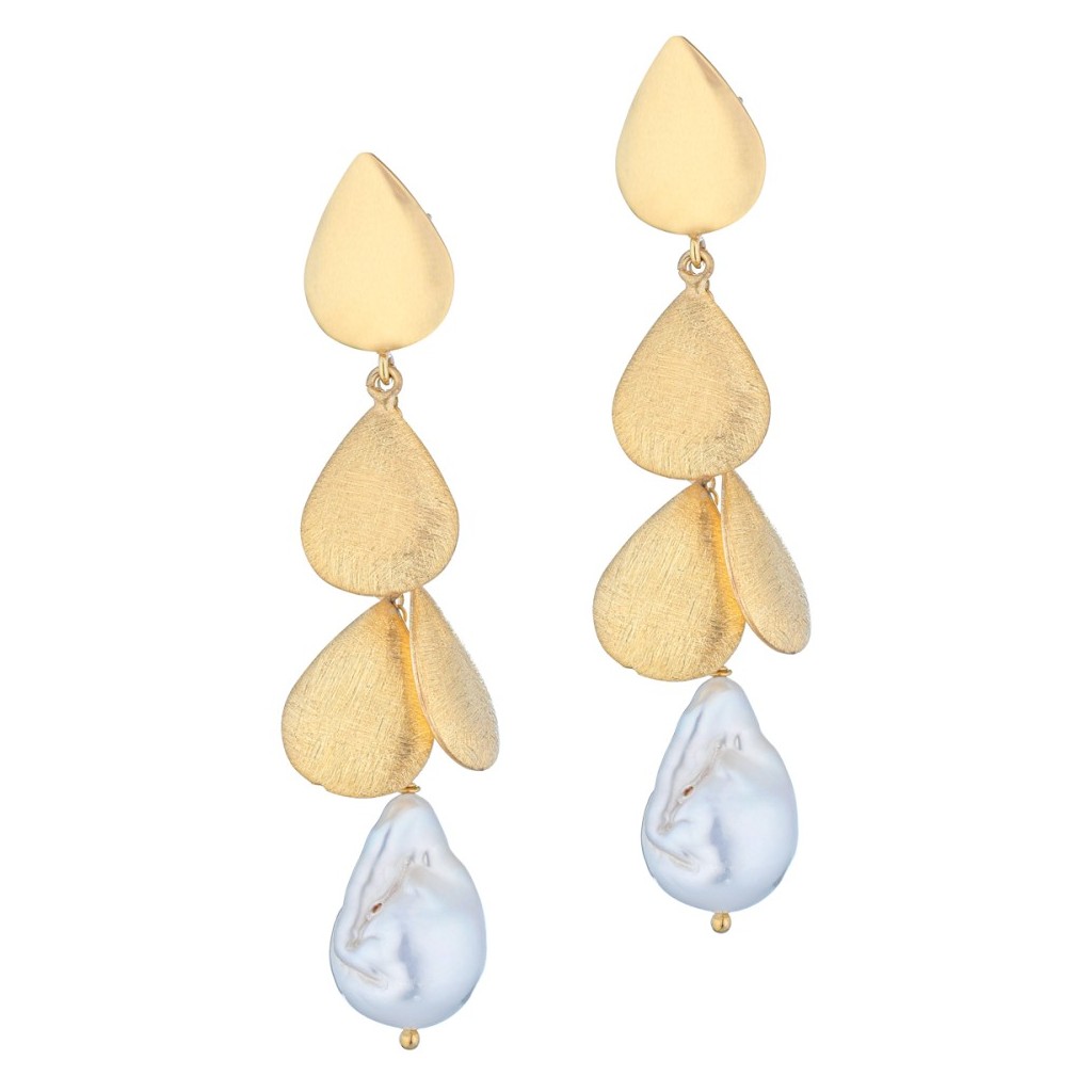 Gli Orecchini gocce di perle longuette Bonton sono costituiti da perle barocche con elementi in argento dorato a forma di gocce.