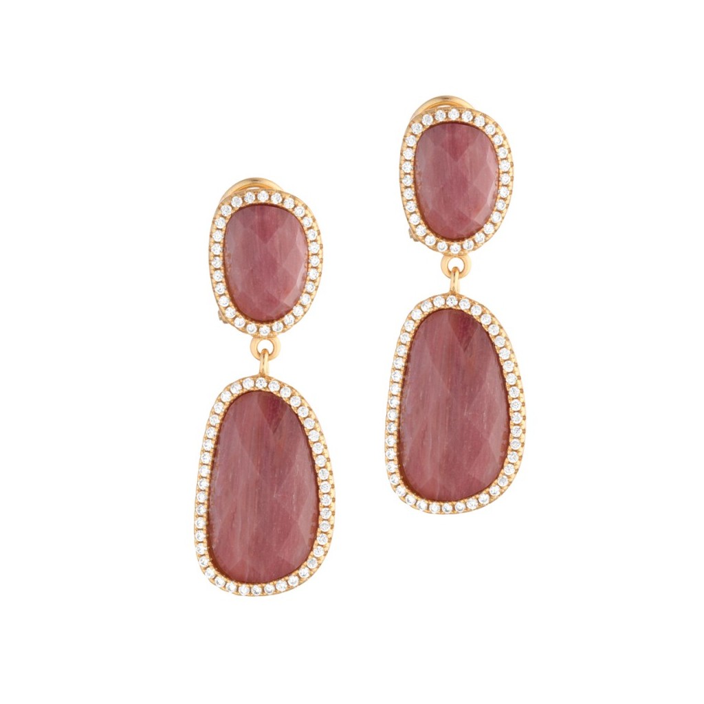 Gli Orecchini veneziana eleganza Venice sono realizzati in argento 925 con base dorata impreziosità da due pietre faccettate e un perimetro di zirconi bianchi.