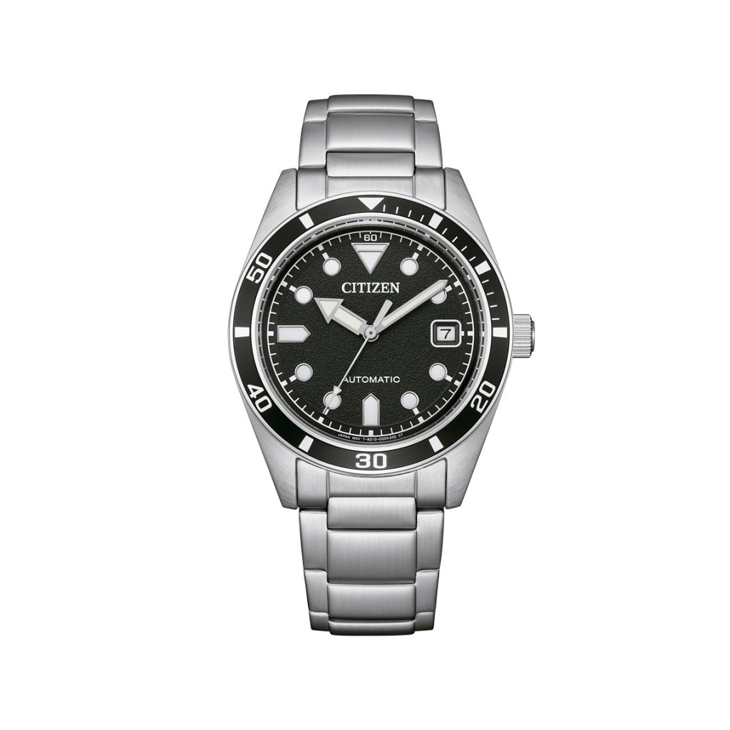 Orologio con cassa e bracciale in acciaio, diametro di 38,50 mm. Movimento meccanico a carica automatica a 21 rubini. Riserva di carica di 38 ore. Funzione solo tempo e data. Fondello a vite con oblò trasparente e movimento a vista. Vetro minerale. Resistenza all’acqua di 10 atm.