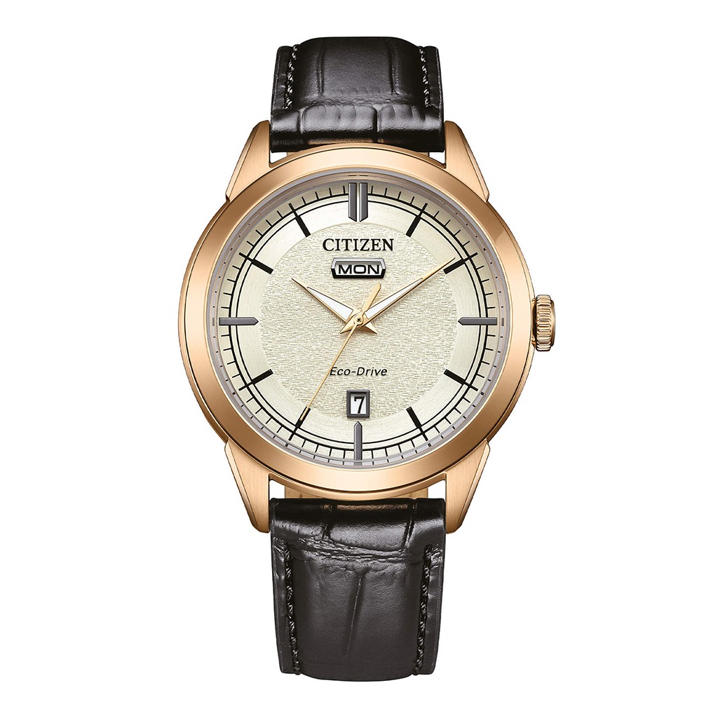 Il Citizen OF Collection Day Date 2026 unisce stile classico e tecnologia sostenibile. Il movimento Eco-Drive solare al quarzo offre fino a 240 giorni di autonomia, eliminando la necessità di ricarica. La cassa da 40 mm in acciaio con trattamento IP oro rosa valorizza il quadrante champagne, abbinato a un raffinato cinturino in pelle nera. Completo di datario, fondello a vite e impermeabilità 10 ATM, è l’orologio ideale per chi cerca eleganza, affidabilità e comfort quotidiano.