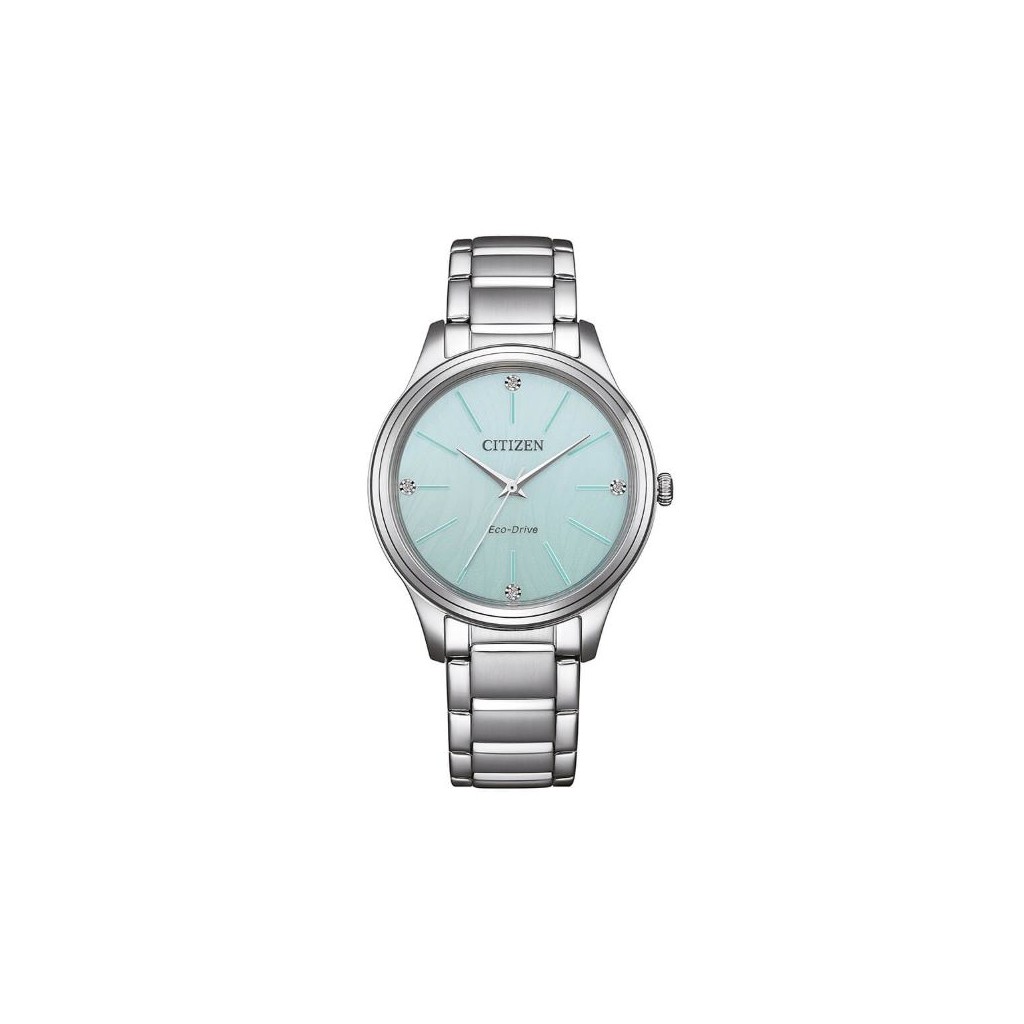 Orologio da donna dal design essenziale e contemporaneo, appartenente alla collezione Citizen Lady. Alimentato da movimento solare al quarzo, garantisce praticità e affidabilità senza necessità di sostituzione della batteria. La cassa e il bracciale in acciaio valorizzano il quadrante analogico color turchese, luminoso e moderno. Con diametro di 34 mm, vetro minerale e impermeabilità fino a 5 ATM, è perfetto per un utilizzo quotidiano con un tocco di colore e stile.