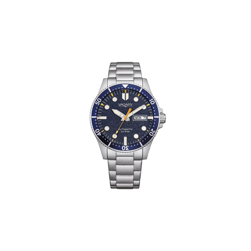 Orologio Vagary Automatico solo tempo uomo. Cassa in acciaio da 40 mm, quadrante blu con indici a pallettoni, datario alle ore 3.