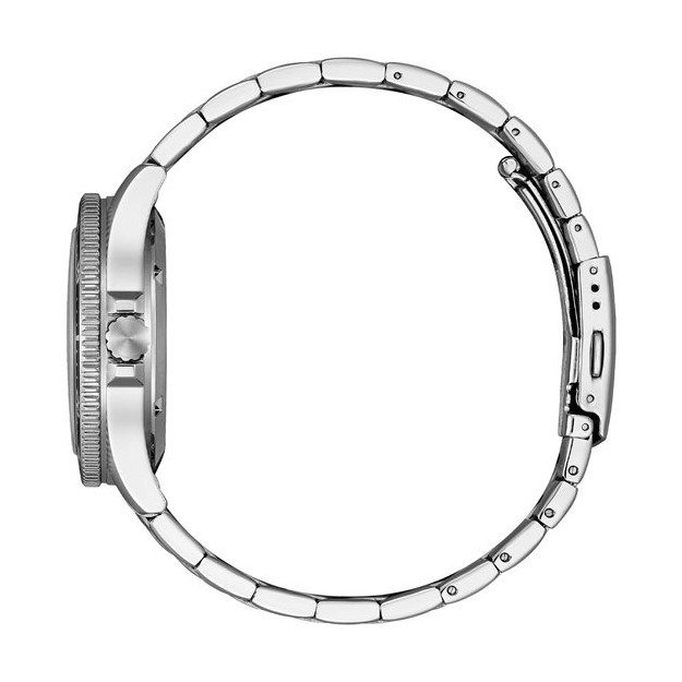 Vetro minerale, bracciale in acciaio. Impermeabilità di 10 atm.