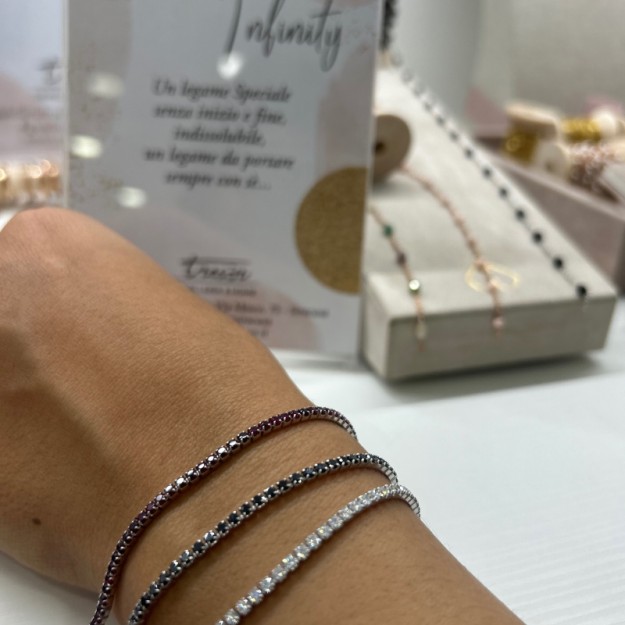 Bracciale rigido con boules asimmetriche realizzate con una speciale lavorazione sabbiata che rende l’argento ancora più scintillante.Disponibili...