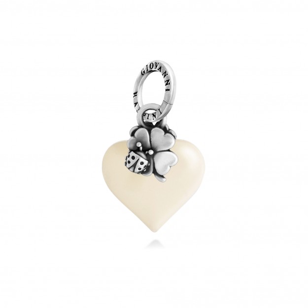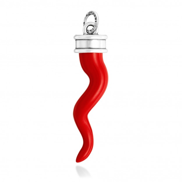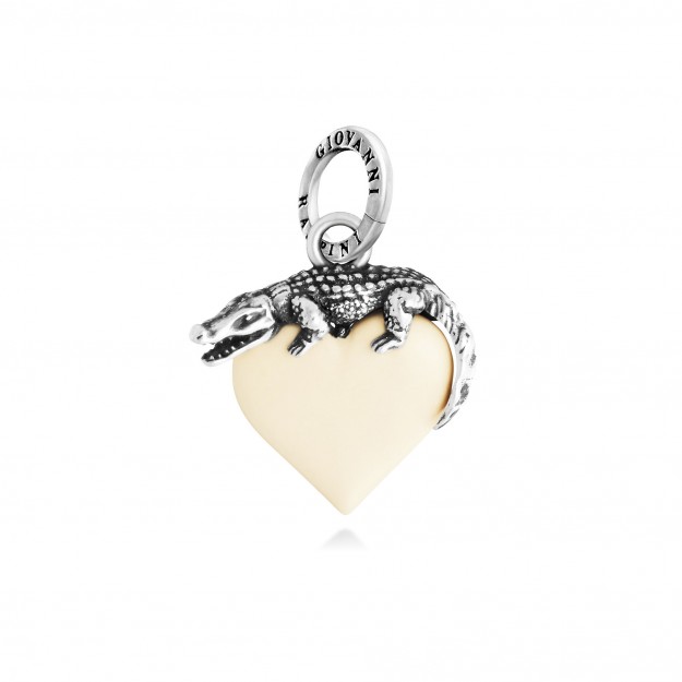 Un oggetto dal fascino primordiale, reinterpretato con maestria artigianale. La zanna in resina avorio è sospesa a un elemento in argento brunito,...
