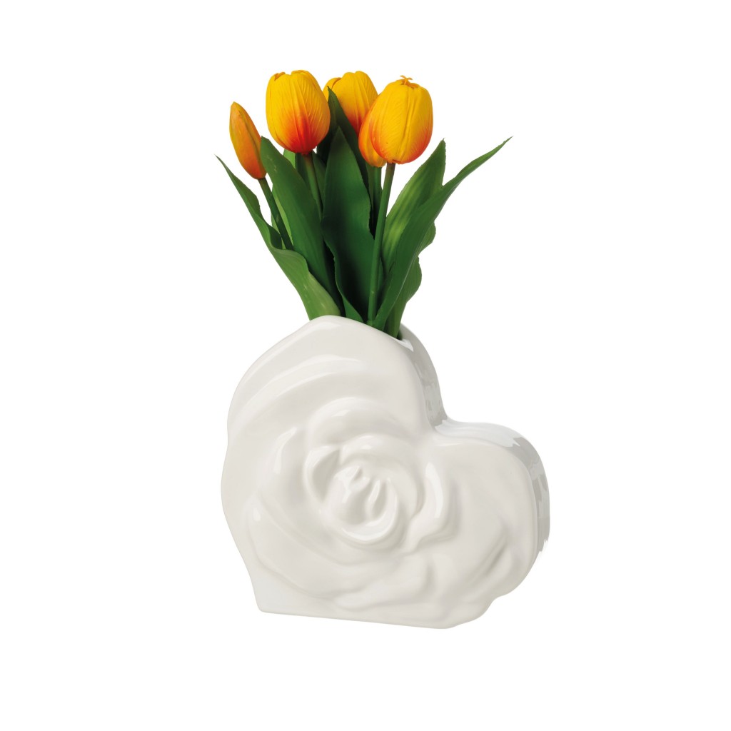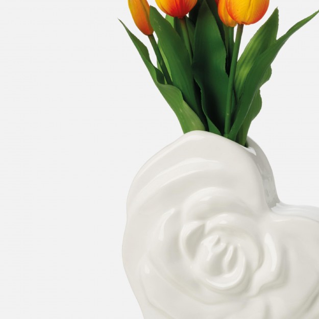 Vaso Cuore con Rosa bianco lucido