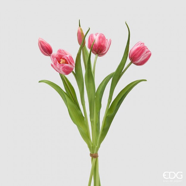 Elegante bouquet composto da 5 tulipani, perfetto per decorazioni raffinate sia in ambienti interni che esterni.Ideale per composizioni floreali...